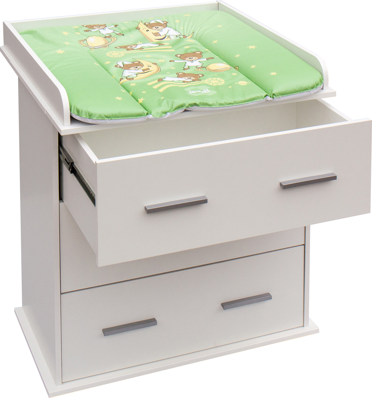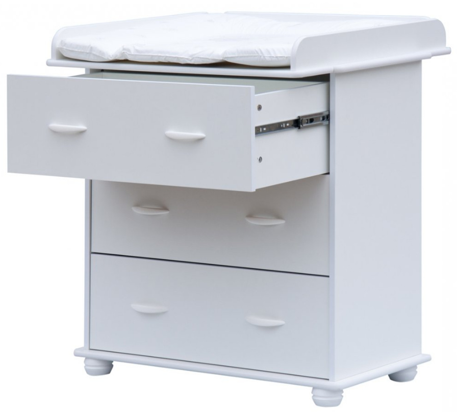 Přebalovací podložka z PVC není v ceně. Váha komody včetně nástavce je 36 kg.