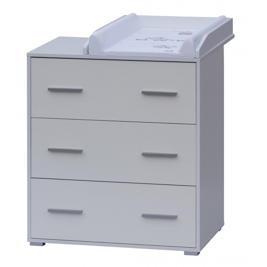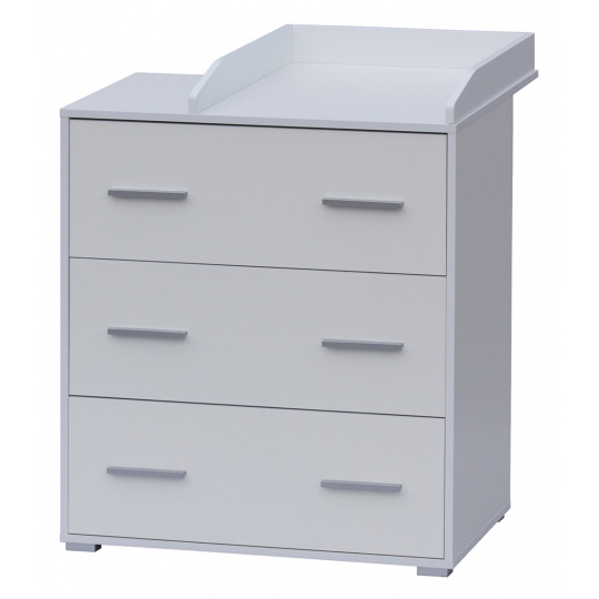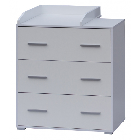 Přebalovací komoda Scarlett je vyrobena z laminátu. Komoda má 3 šuplíky s plným výsuvem. Přebalovací nástavec lze na komodu připevnit vlevo nebo vpravo a je standardní součástí komody. Až nebude přebalovací nástvavec potřeba lze komodu nadále používat i ve studentském pokojíčku.
