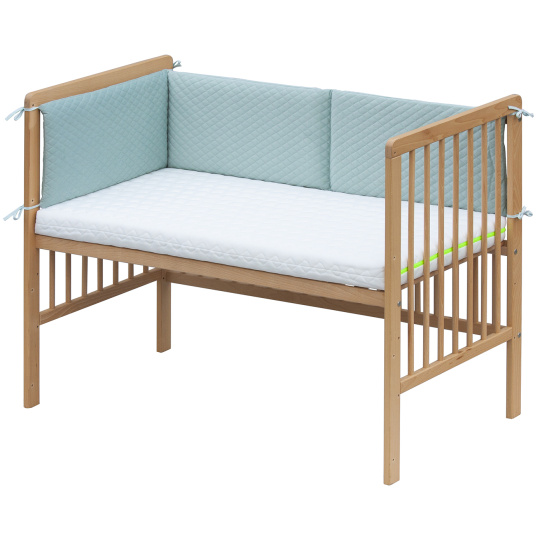 Mantinel do postýlky pro bezpečnější pohyb dítěte. Mantinel je do 1/2 postýlky 120 x 60 cm, výška 30 cm. Přivazuje se k tyčkám. Pokud by Vám nestačil mantinel do půlky postýlky, lze si dát dva proti sobě a mít tak ochranu po celé postýlce.