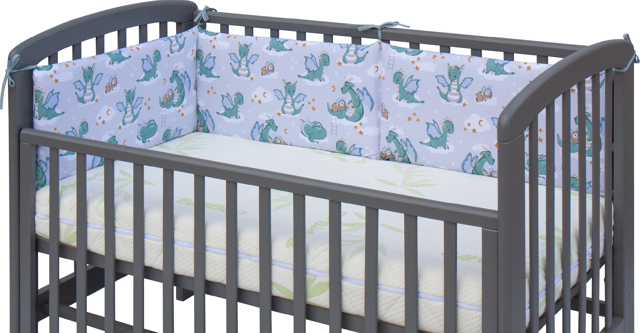 Scarlett Mantinel do postýlky 4dílný - Scarlett Dino - 180 x 30 cm - tyrkysová