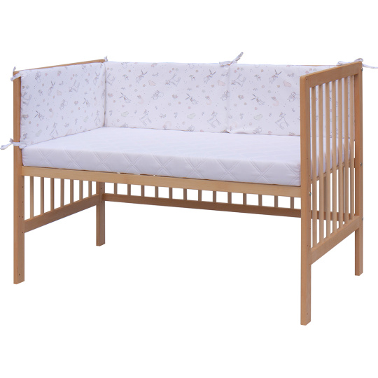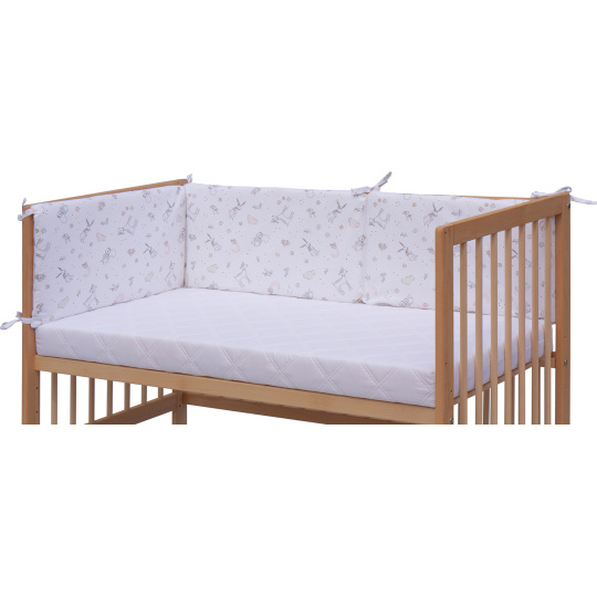 Mantinel do postýlky pro bezpečnější pohyb dítěte. Mantinel je do 1/2 postýlky 120 x 60 cm, výška 30 cm. Přivazuje se k tyčkám. Pokud by Vám nestačil mantinel do půlky postýlky, lze si dát dva proti sobě a mít tak ochranu po celé postýlce.