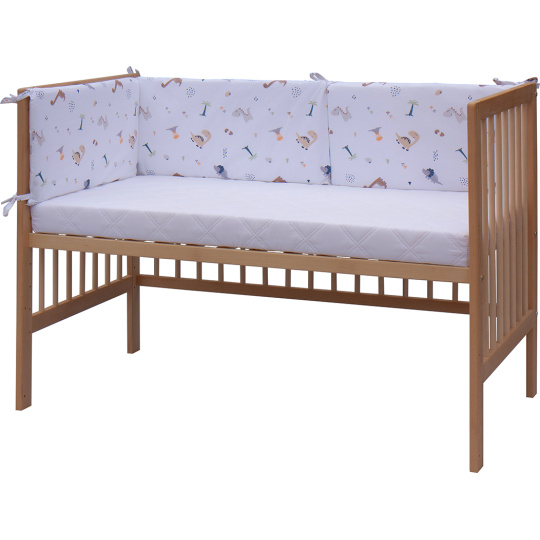 Mantinel do postýlky pro bezpečnější pohyb dítěte. Mantinel je do 1/2 postýlky 120 x 60 cm, výška 30 cm. Přivazuje se k tyčkám. Pokud by Vám nestačil mantinel do půlky postýlky, lze si dát dva proti sobě a mít tak ochranu po celé postýlce.