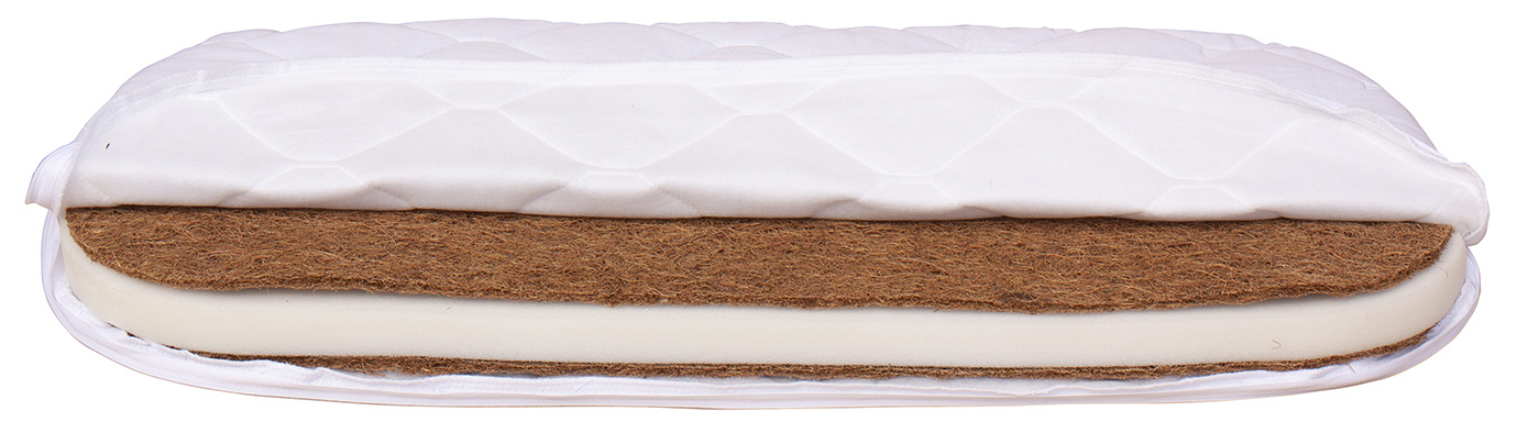 Kokosové vlákno (8 mm) + PUR pěna (25 mm) + kokosové vlákno (8 mm)