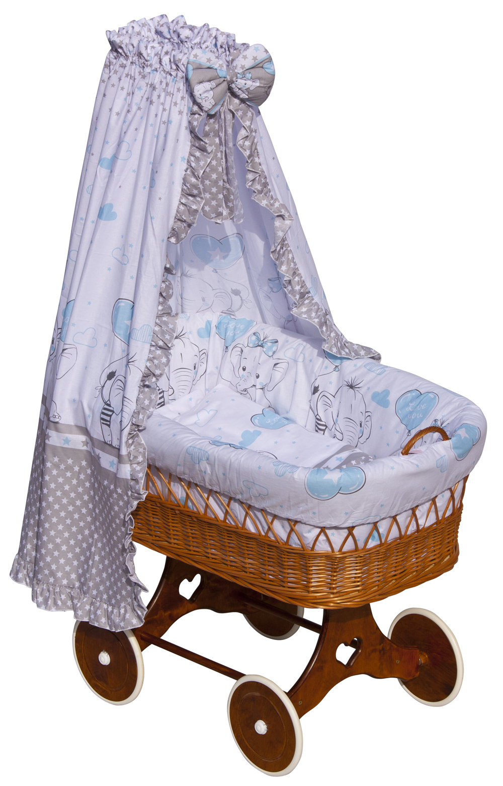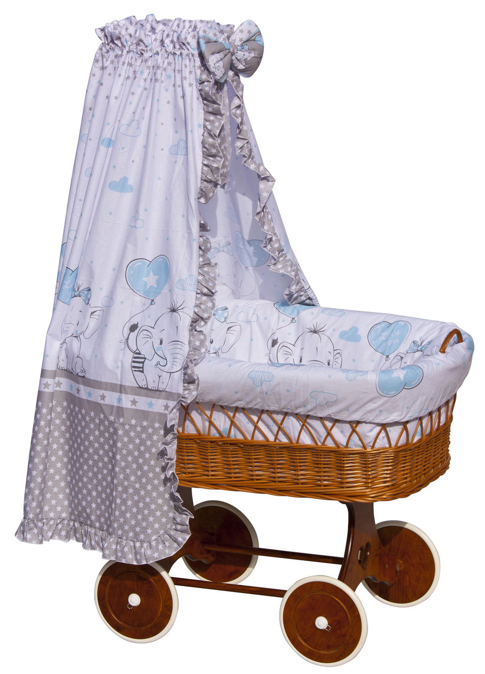 Nebesa do kolébky a koše lemované volánkem jsou krásným doplňkem každé kolébky, nebo koše. Chrání děti před přímým světlem a zajišťují soukromí před okolními rušivými vlivy. Nebesa se lehce nasazují na univerzální držák. Nebesa jsou doplněna velkou krásnou mašlí.