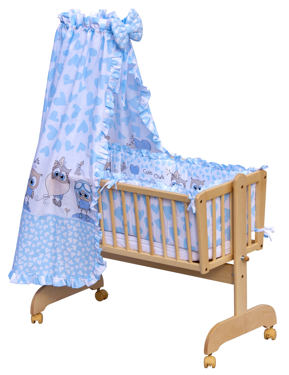 Nebesa do kolébky a koše lemované volánkem jsou krásným doplňkem každé kolébky, nebo koše. Chrání děti před přímým světlem a zajišťují soukromí před okolními rušivými vlivy. Nebesa se lehce nasazují na univerzální držák. Nebesa jsou doplněna velkou krásnou mašlí.