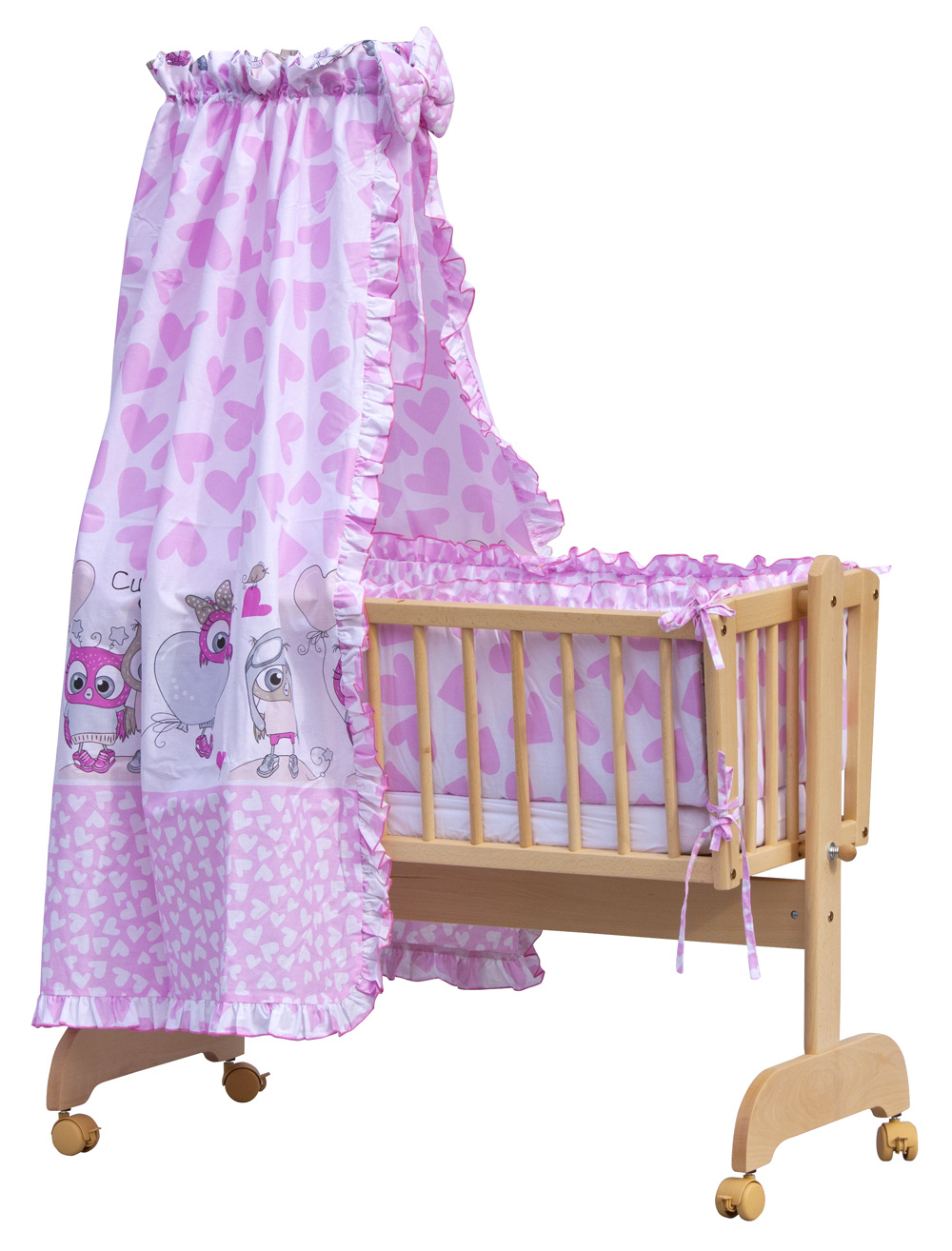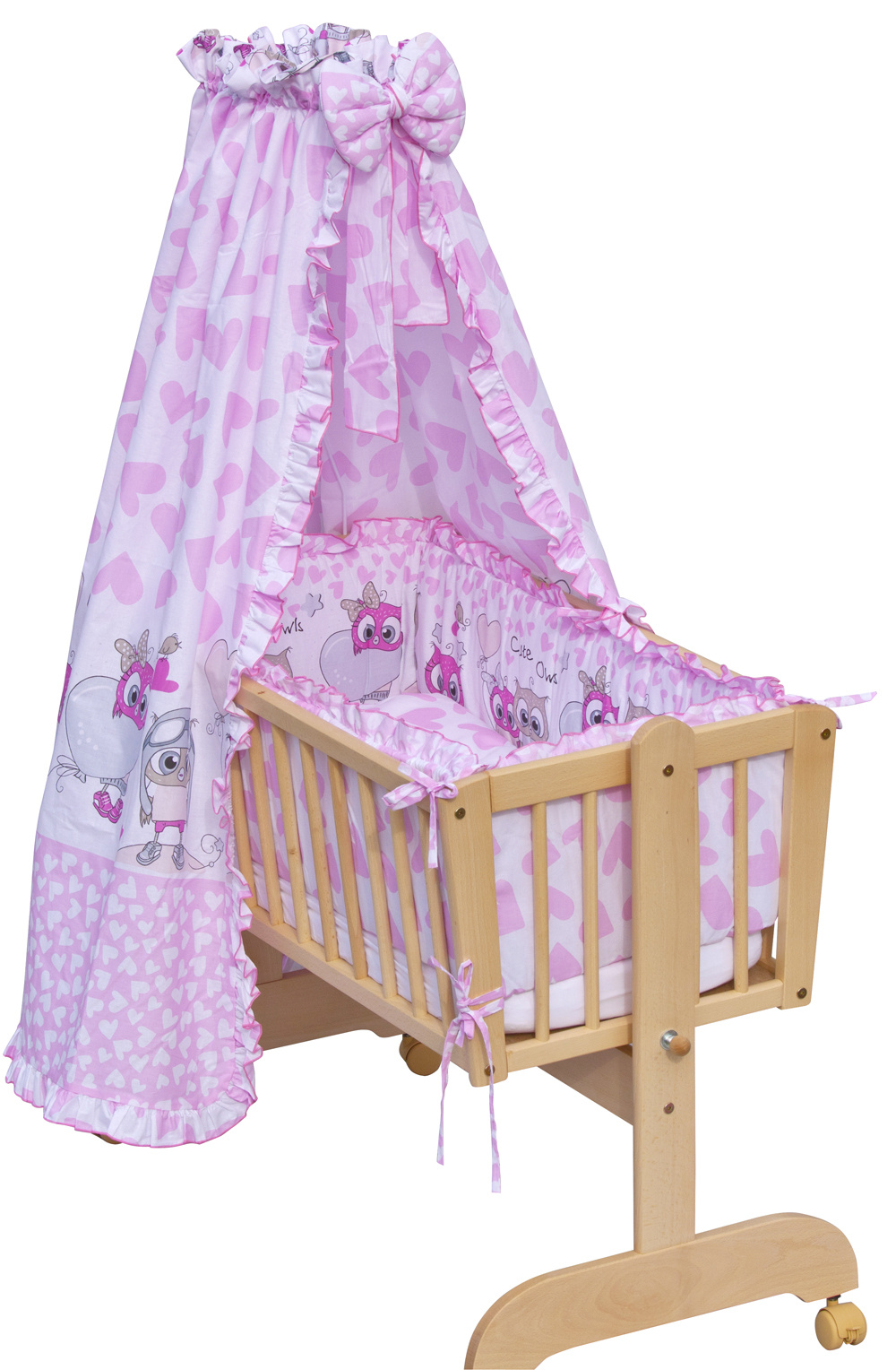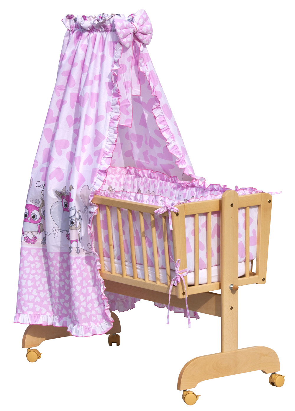 Nebesa do kolébky a koše lemované volánkem jsou krásným doplňkem každé kolébky, nebo koše. Chrání děti před přímým světlem a zajišťují soukromí před okolními rušivými vlivy. Nebesa se lehce nasazují na univerzální držák. Nebesa jsou doplněna velkou krásnou mašlí.