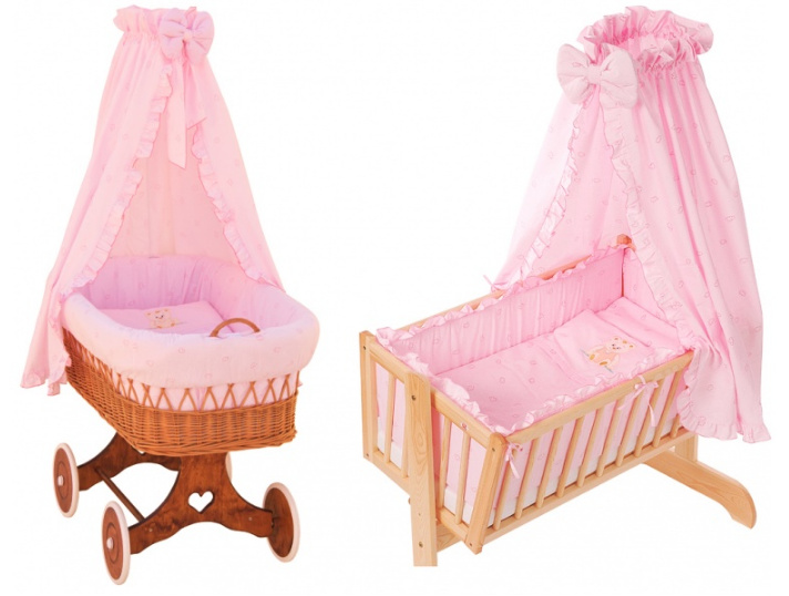Scarlett Nebesa nad Mojžíšův košík pro miminko a kolébky - Scarlett Méďa - růžová