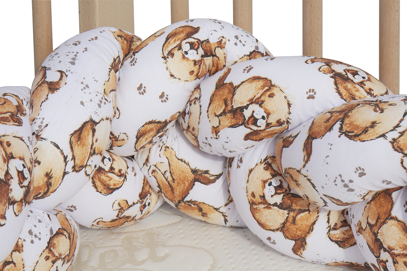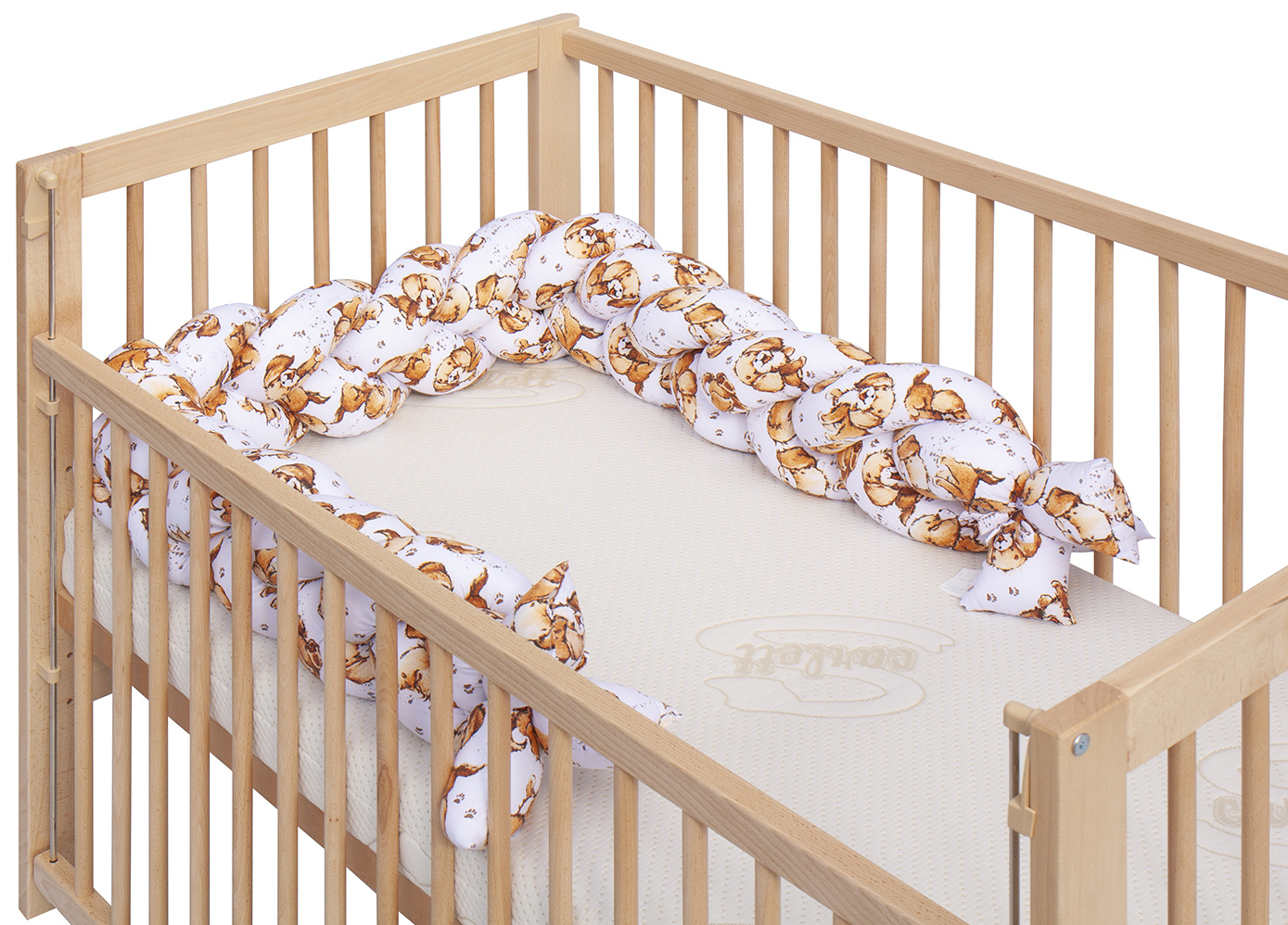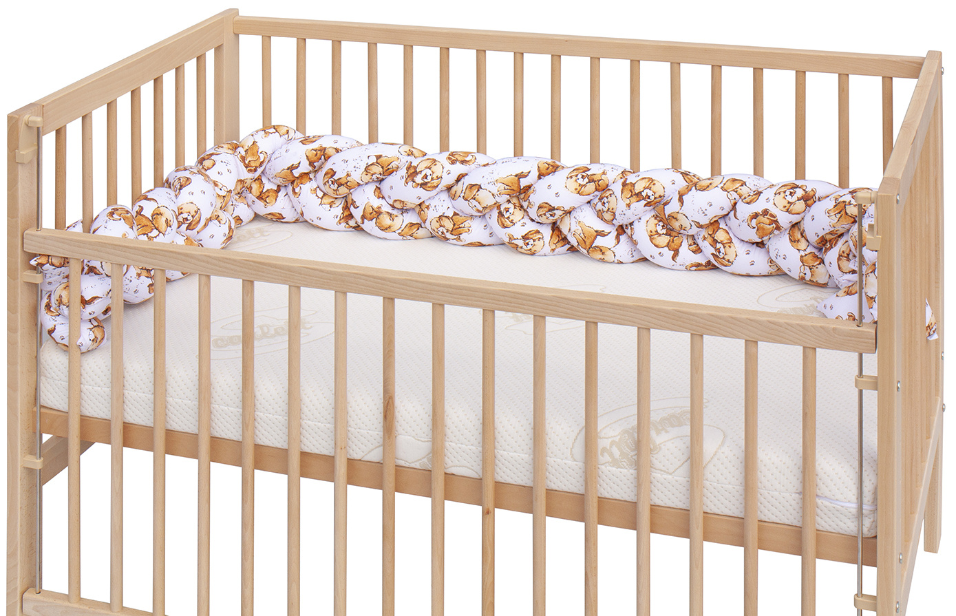 Mantinel do postýlky (cop) okolo postýlky pro bezpečnější pohyb dítěte. Límec je dlouhý 210 cm. S ochranným límcem bude postýlka pro miminko velmi bezpečná a ochrání miminko od nárazu o příčky postýlky. Cop je tvořený spletením tří válečků. Cop se dá použít i mimo postýlku jako vymezení prostoru pro hraní, jako hnízdečko, nebo později v klasické posteli.