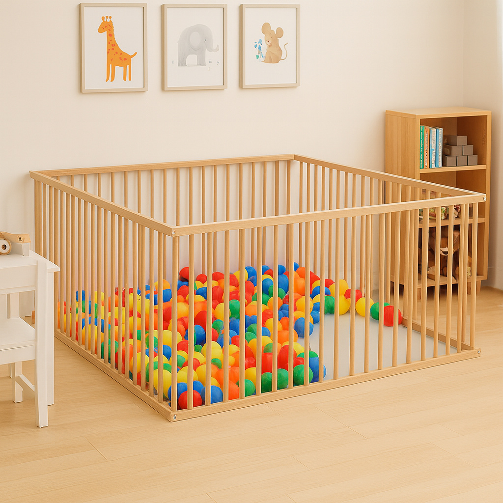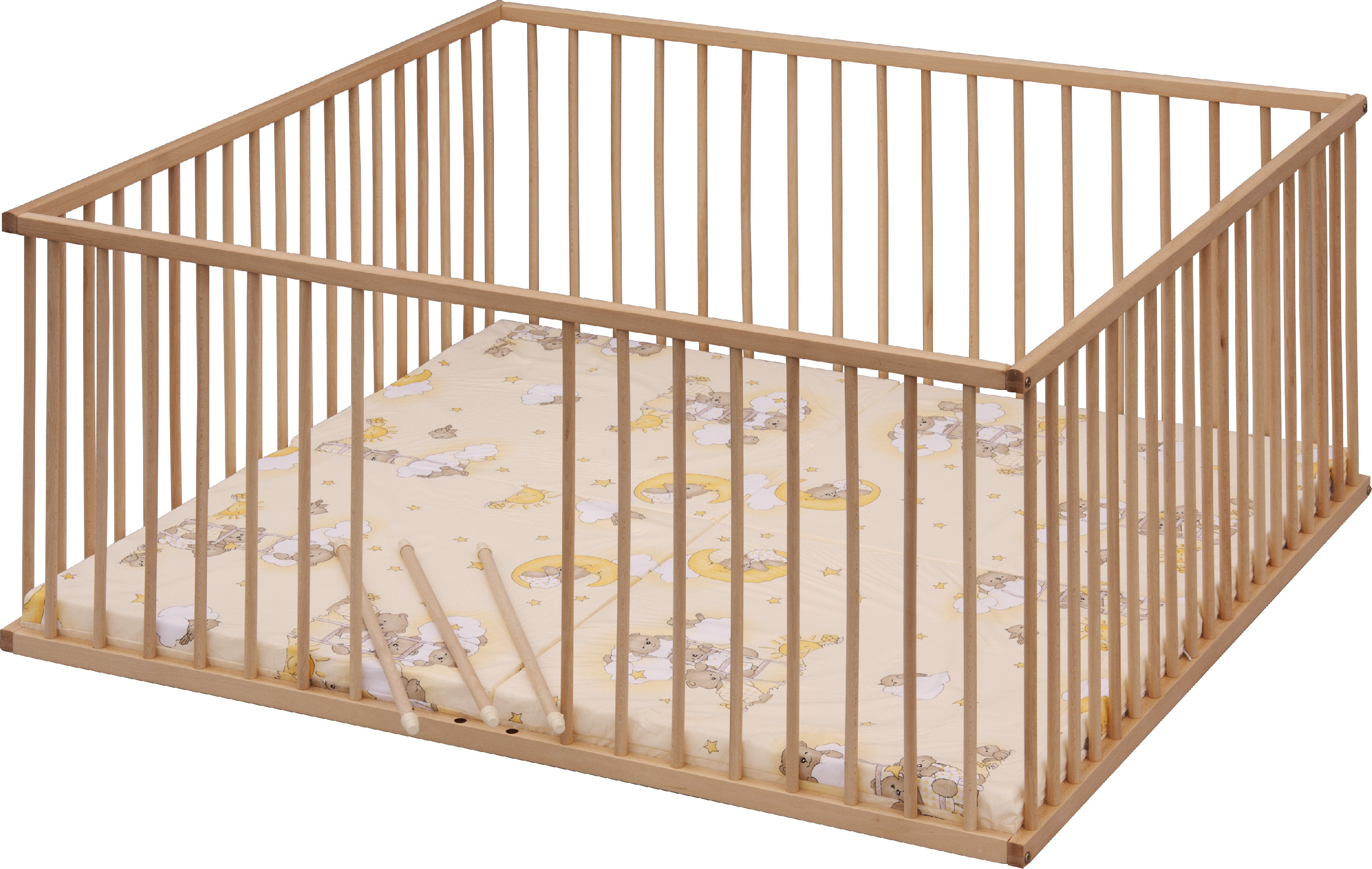 Ohrádka je pro lepší přístup dětí doplněna třemi vyndavacími příčkami. Ohrádku je vhodné doplnit hracími dekami, které také najdete v naší nabídce.