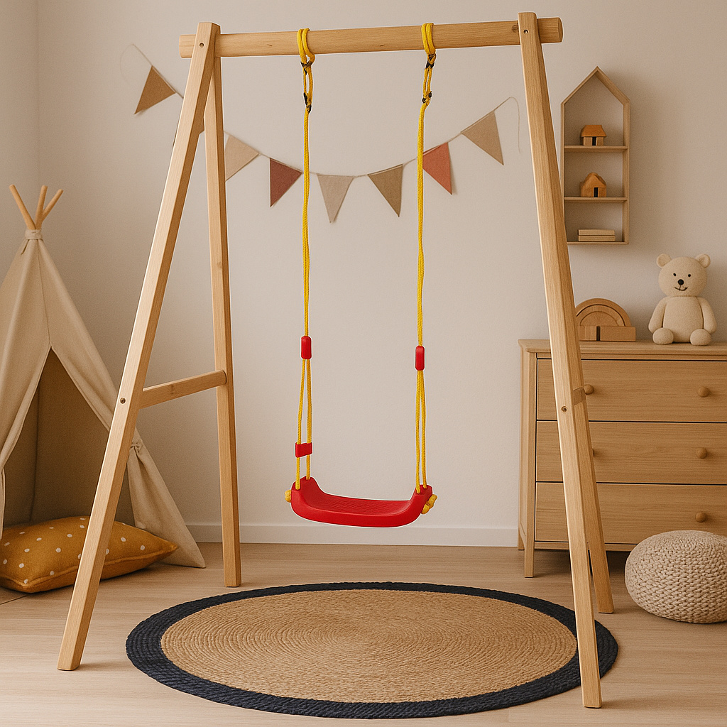 Houpačka je jednoduché konstrukce. Výška houpačky je nastavitelná