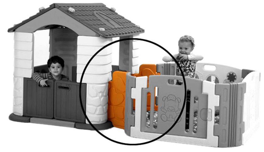 Plastová spojka slouží k připevnění ohrádky Scarlett Méďa a plastového domečku Scarlett Eda.