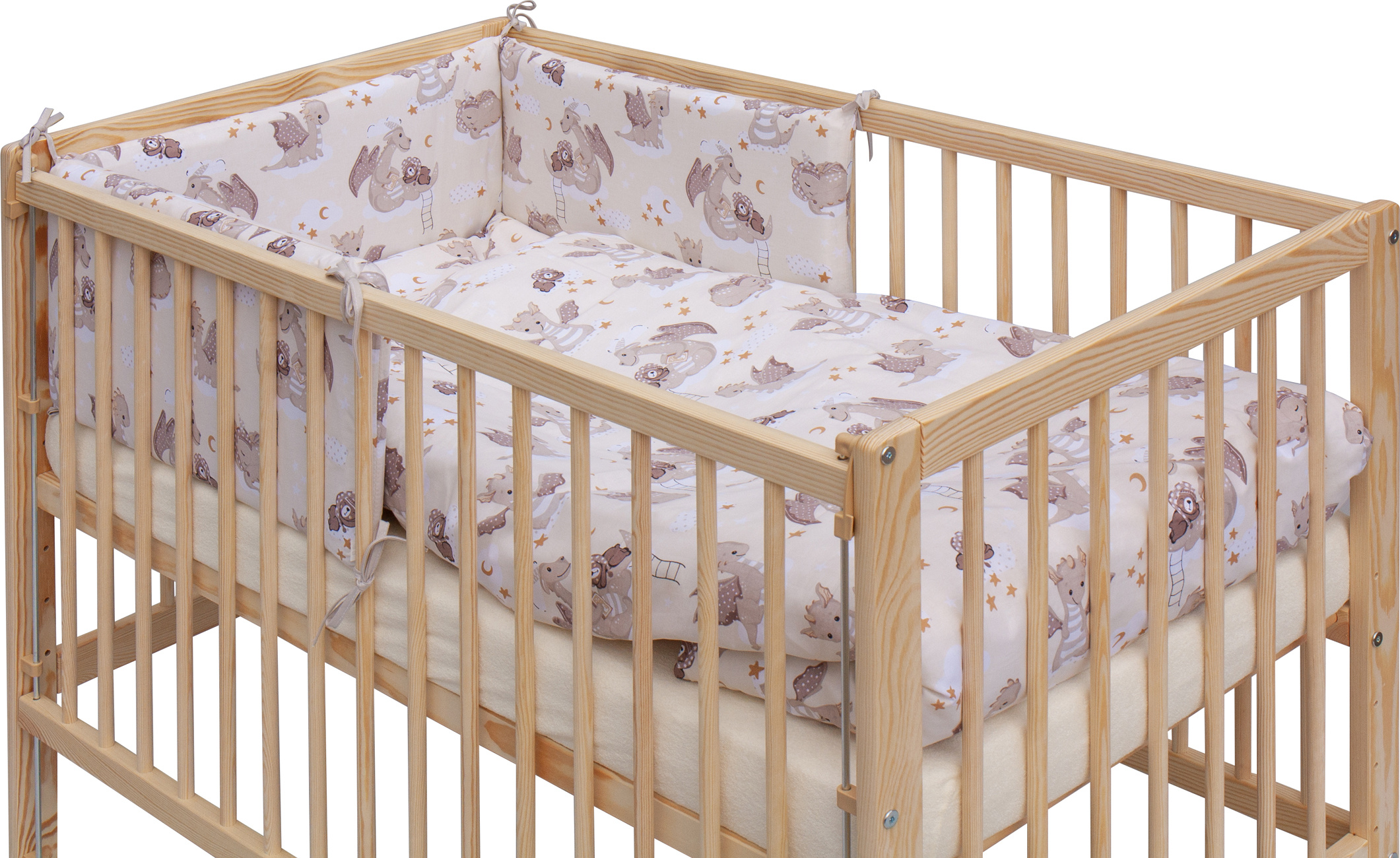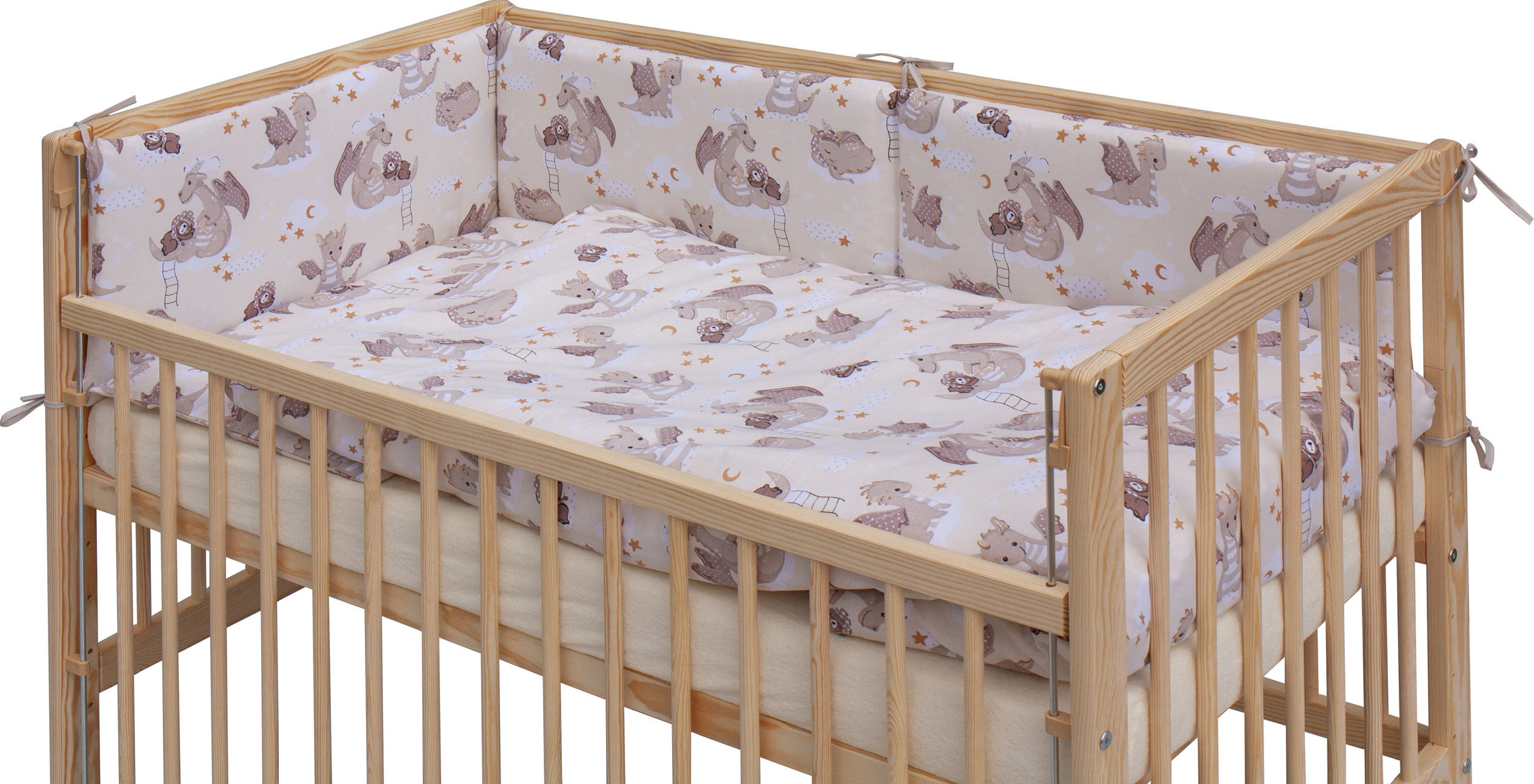 Scarlett Dětská postýlka s kompletní výbavou Scarlett 120 x 60 cm - Dino - béžová