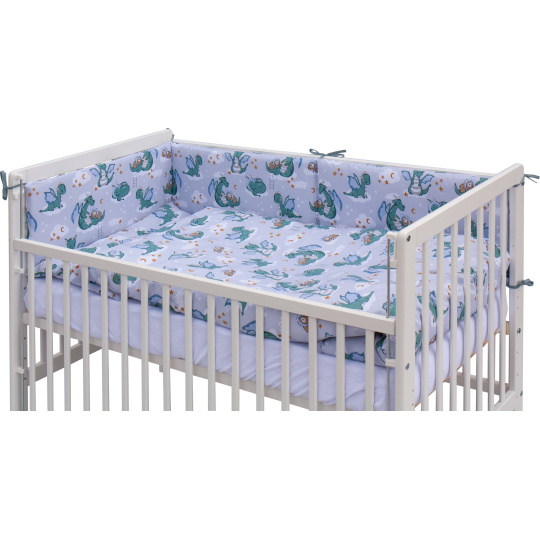 Scarlett Dětská postýlka s kompletní výbavou Scarlett 120 x 60 cm - Dino - tyrkysová