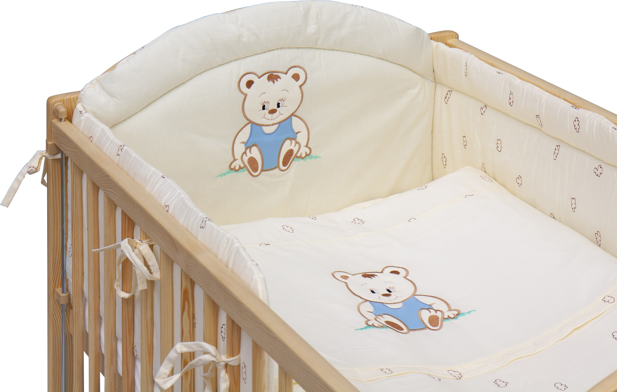 Dětská postýlka s kompletní soupravou povlečení a doplňků Scarlett Méďa