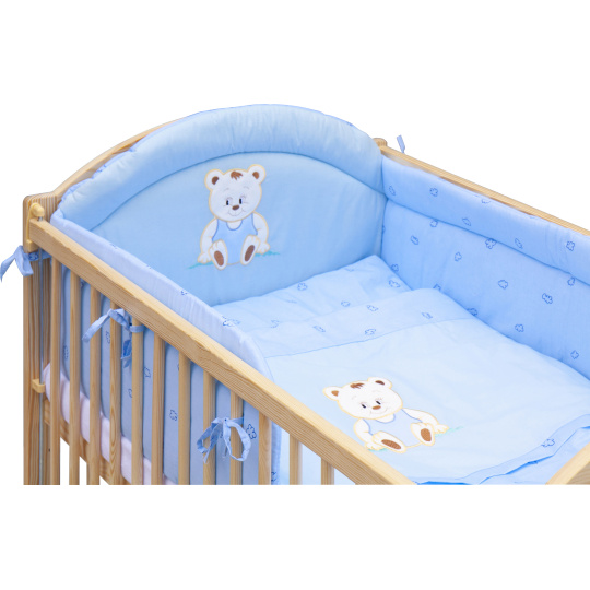 Scarlett Dětská postýlka s kompletní výbavou Scarlett 120 x 60 cm - Méďa - modrá
