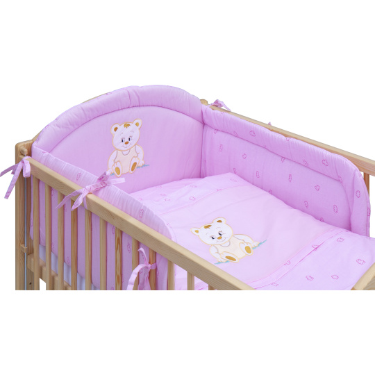 Scarlett Dětská postýlka s kompletní výbavou Scarlett 120 x 60 cm - Méďa - růžová