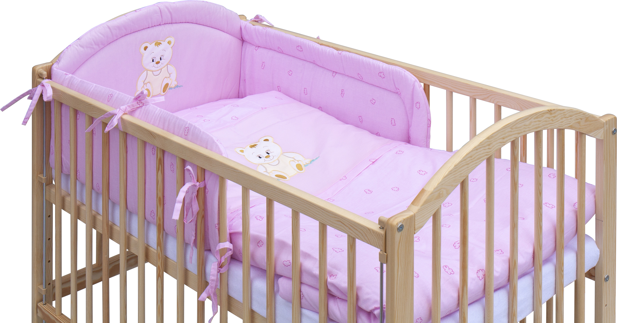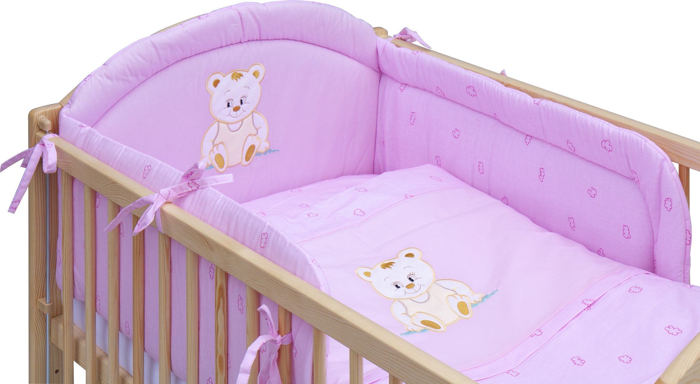 Scarlett Dětská postýlka s kompletní výbavou Scarlett 120 x 60 cm - Méďa - růžová