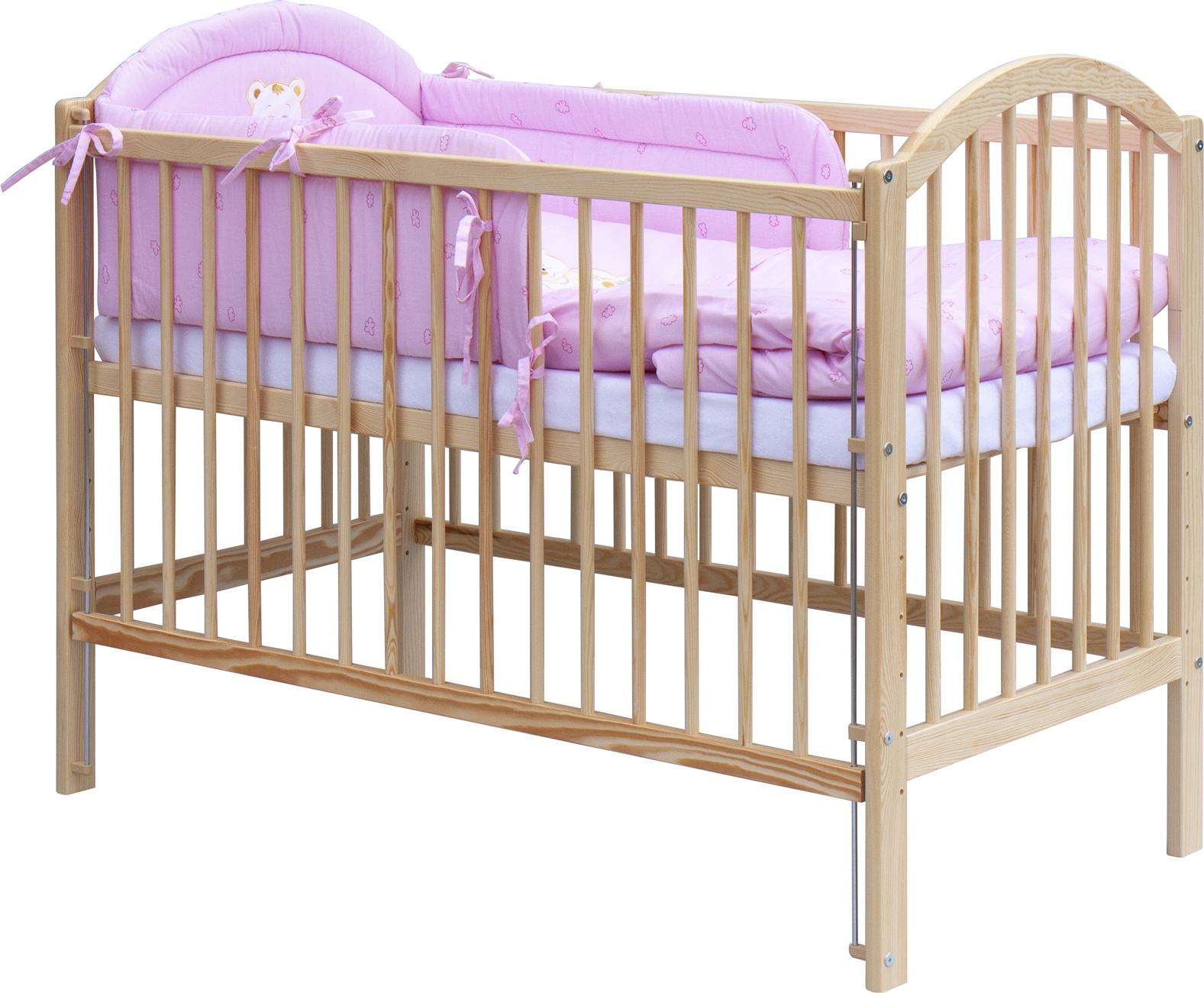 1. Dětská dřevěná postýlka 120 x 60 cm - přírodní, masiv borovice, stahovací bok, 6 poloh roštu