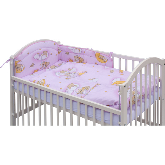 Scarlett Dětská postýlka s kompletní výbavou Scarlett 120 x 60 cm - Mráček - růžová