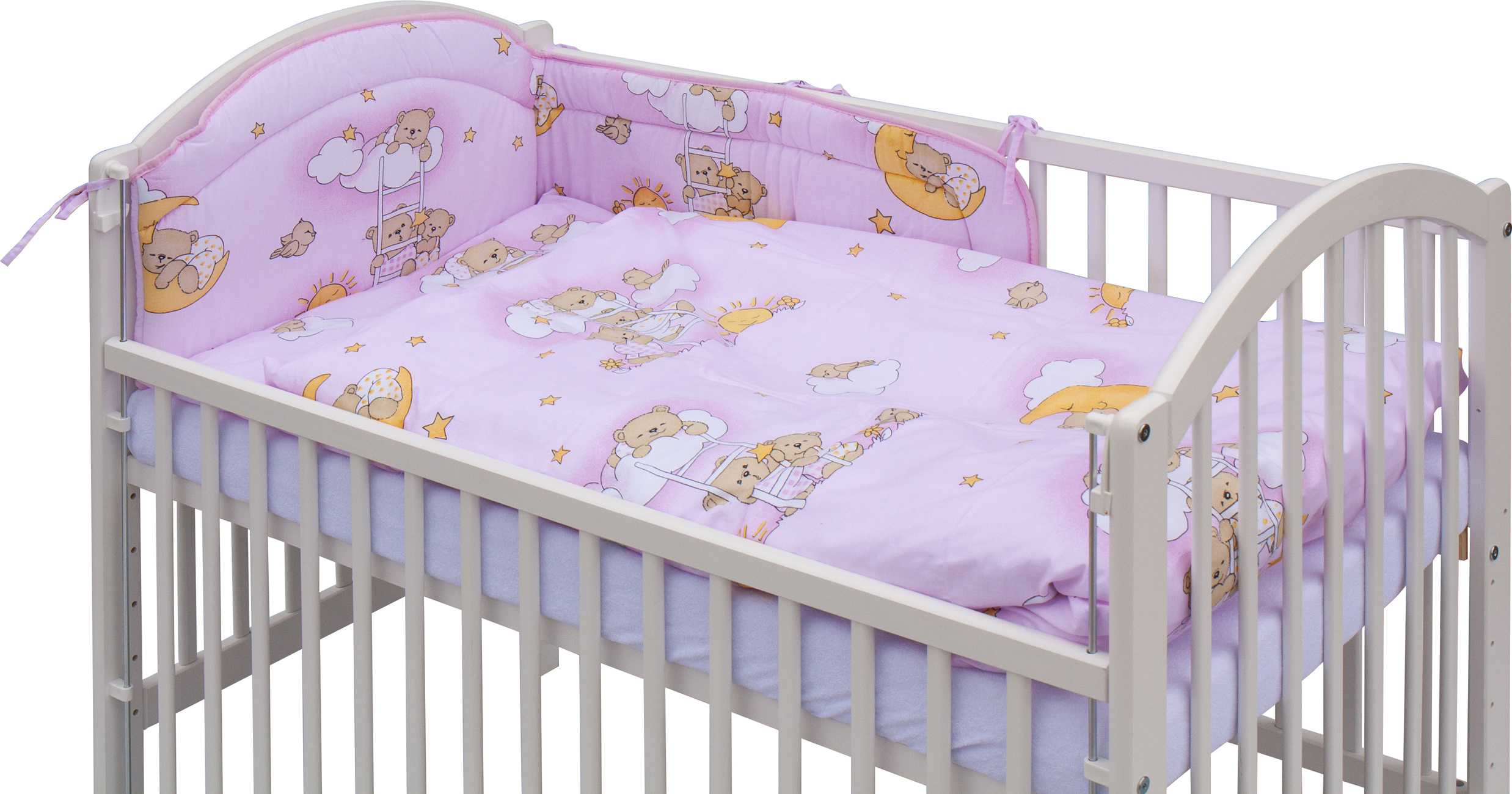 Scarlett Dětská postýlka s kompletní výbavou Scarlett 120 x 60 cm - Mráček - růžová