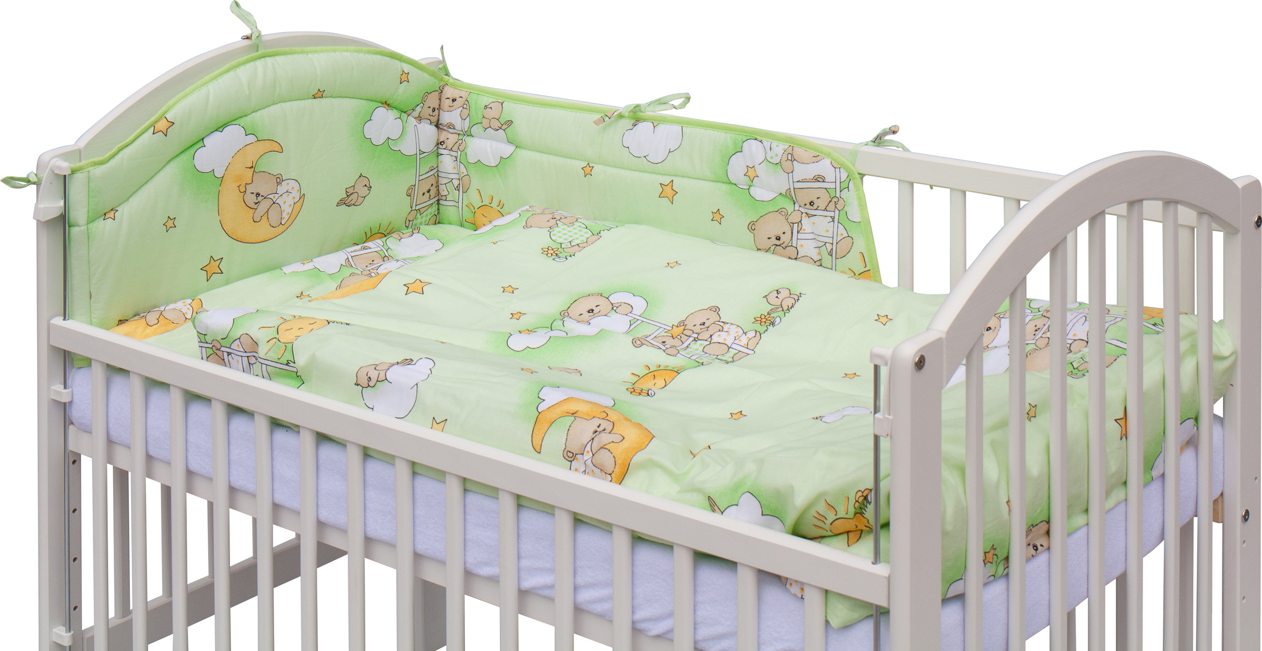 Scarlett Dětská postýlka s kompletní výbavou Scarlett 120 x 60 cm - Mráček - zelená
