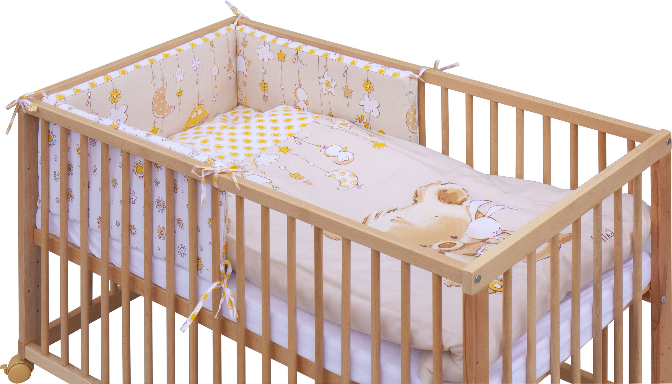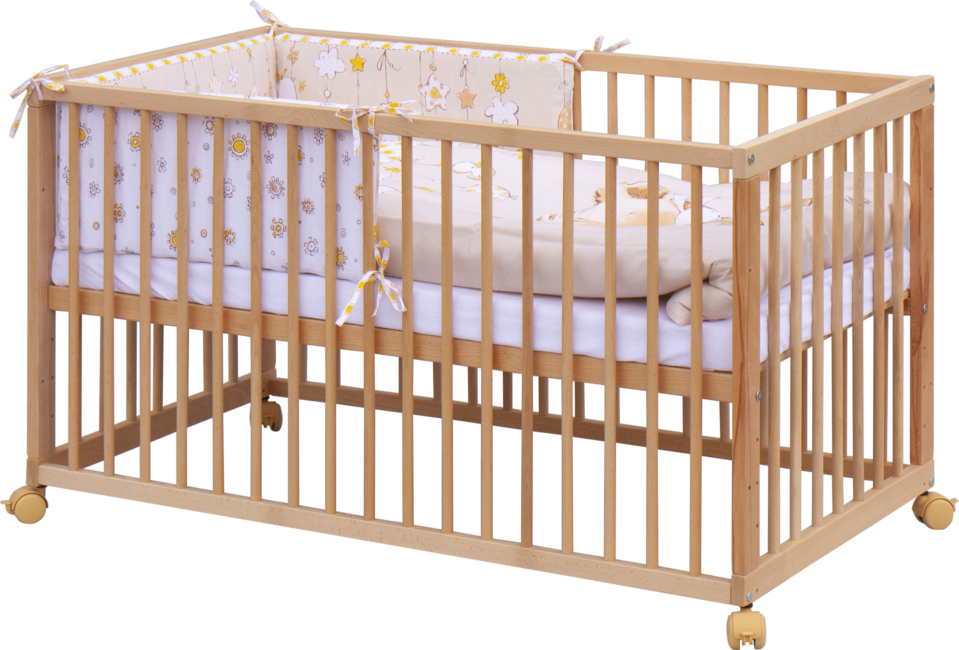 1. Dětská dřevěná postýlka 120 x 60 cm - přírodní, masiv buk, 3 vyndavací příčky, 5 poloh roštu, nohy postýlky jsou předvrtané pro nasazení koleček