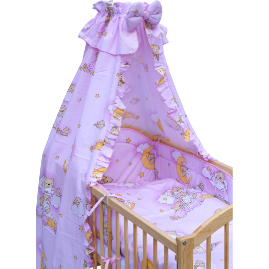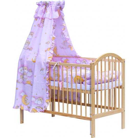 Scarlett Dětská postýlka s kompletní výbavou Scarlett 120 x 60 cm - Mráček - růžová