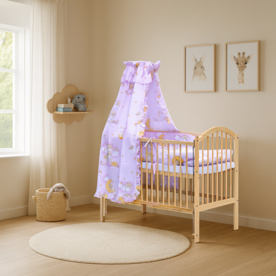 Dětská postýlka s kompletní soupravou povlečení a doplňků Scarlett Mráček