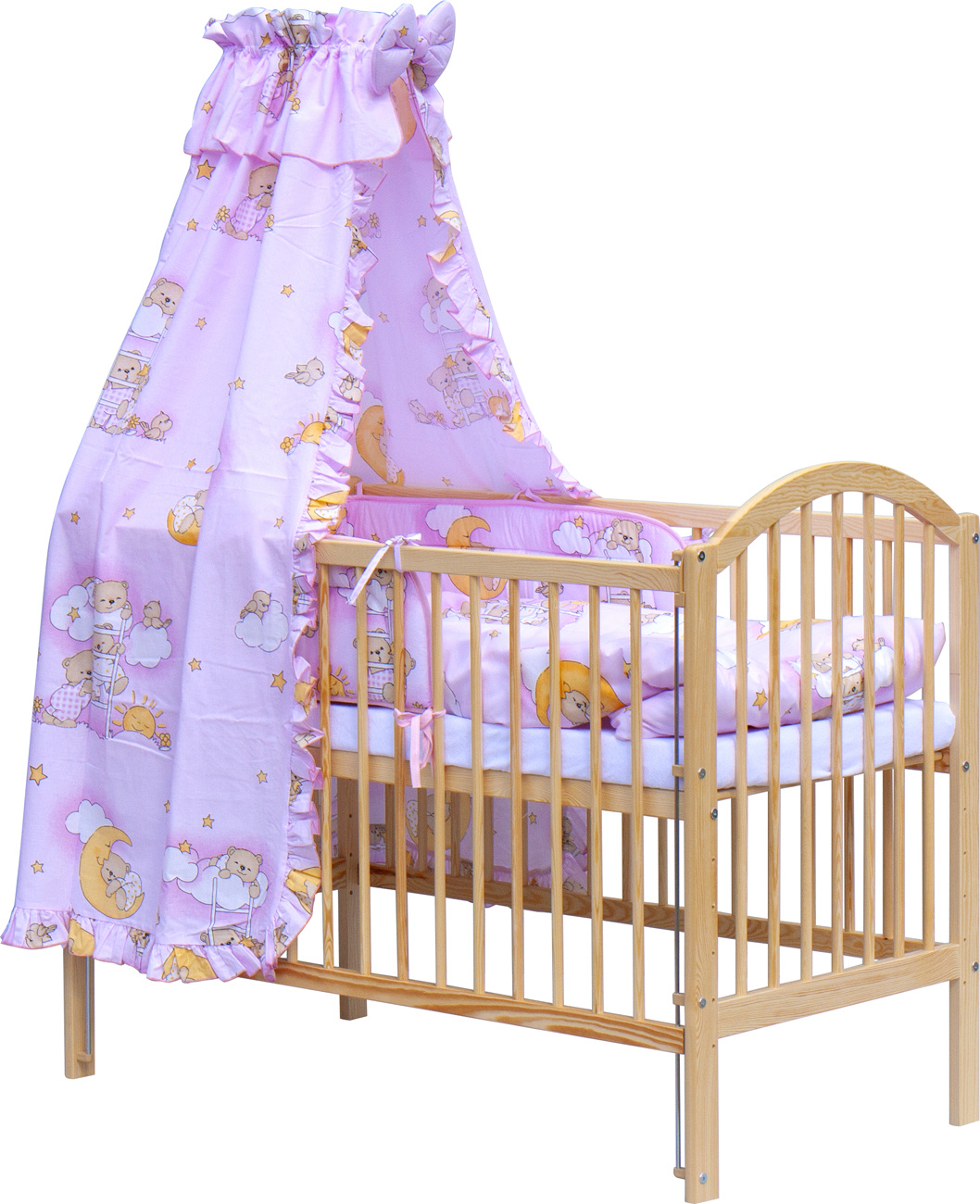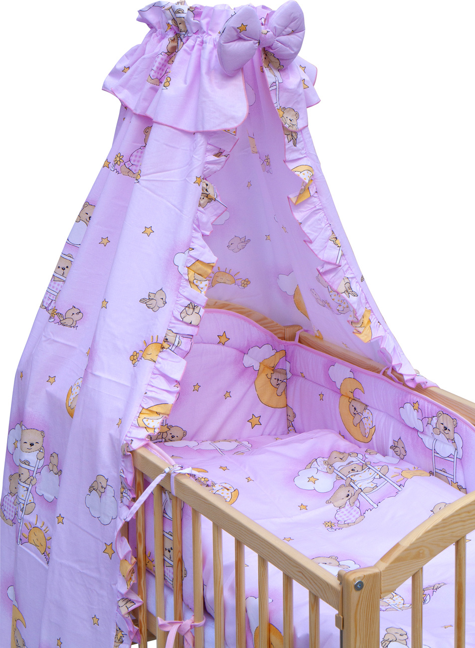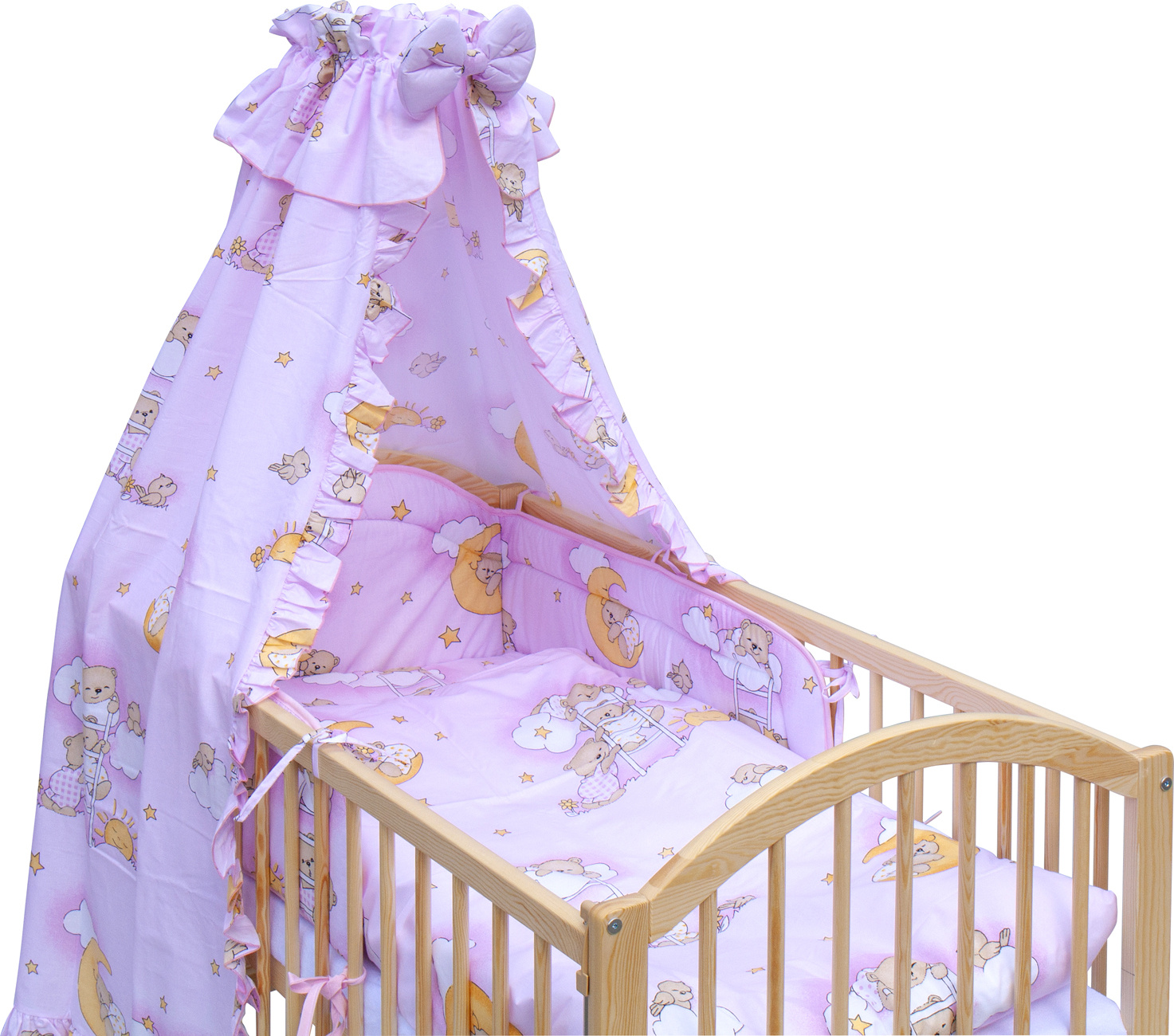 Scarlett Dětská postýlka s kompletní výbavou Scarlett 120 x 60 cm - Mráček - růžová