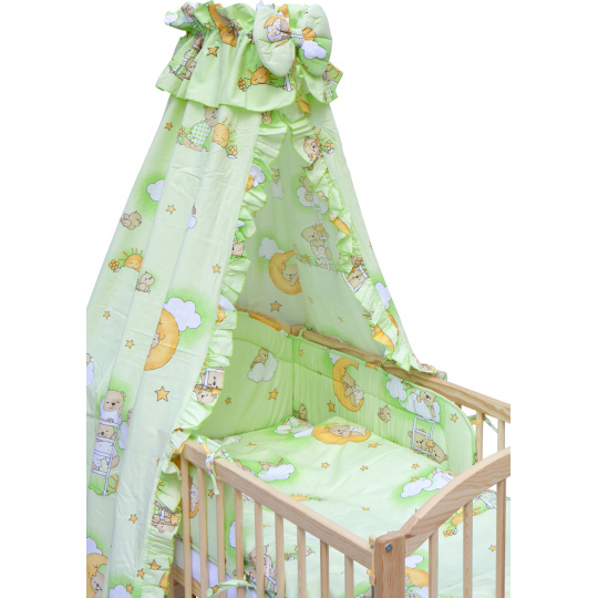 Scarlett Dětská postýlka s kompletní výbavou Scarlett 120 x 60 cm - Mráček - zelená