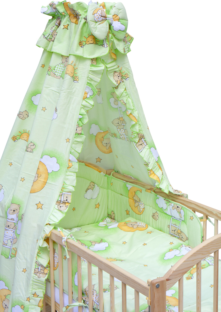 Scarlett Dětská postýlka s kompletní výbavou Scarlett 120 x 60 cm - Mráček - zelená