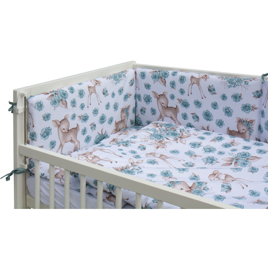 Scarlett Dětská postýlka s kompletní výbavou Scarlett 120 x 60 cm - Srneček - tyrkysová