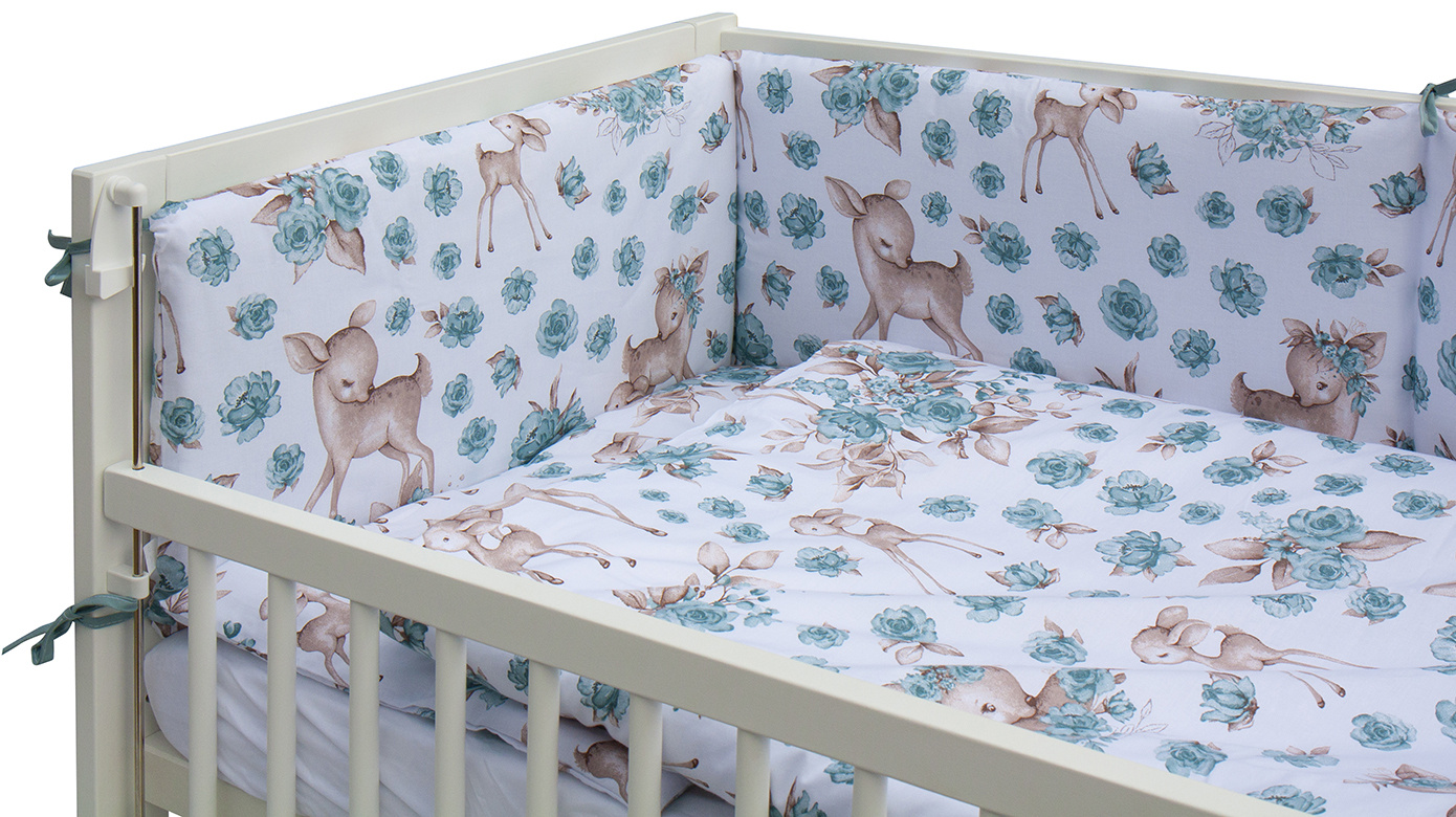 Scarlett Dětská postýlka s kompletní výbavou Scarlett 120 x 60 cm - Srneček - tyrkysová