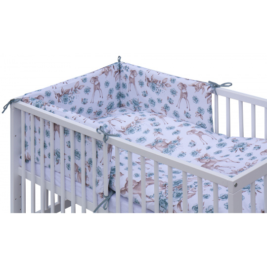 Scarlett Dětská postýlka s kompletní výbavou Scarlett 120 x 60 cm - Srneček - tyrkysová