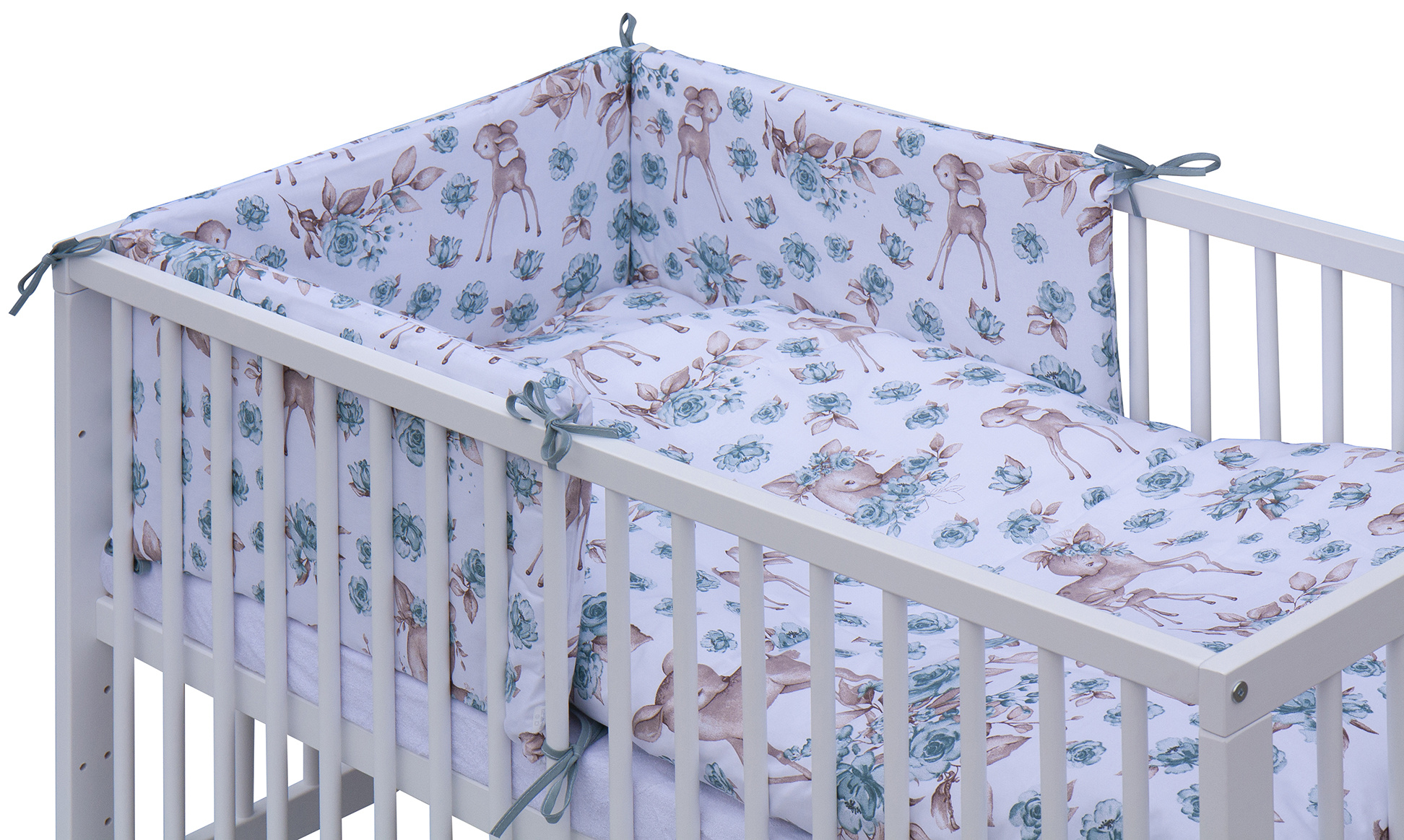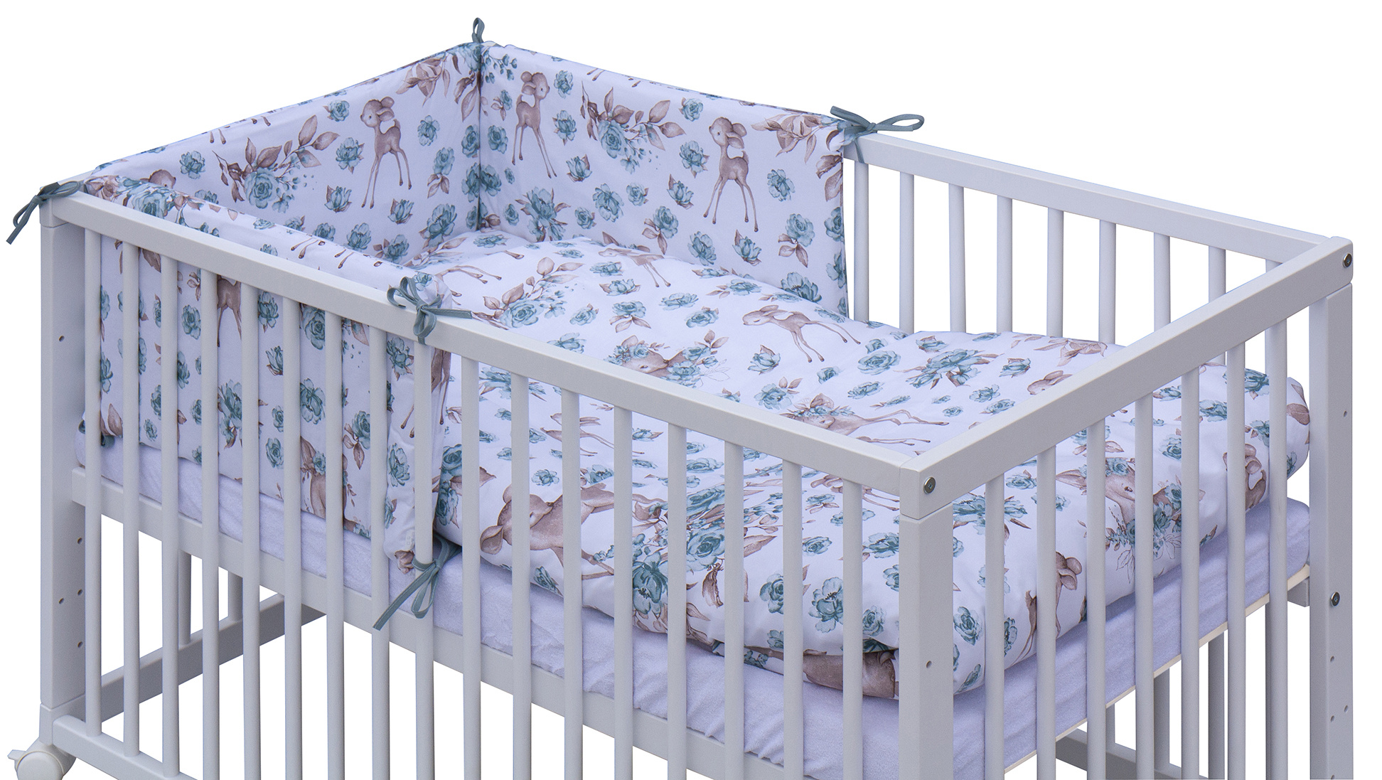Dětská postýlka s kompletní soupravou povlečení a doplňků Srneček - tyrkysová