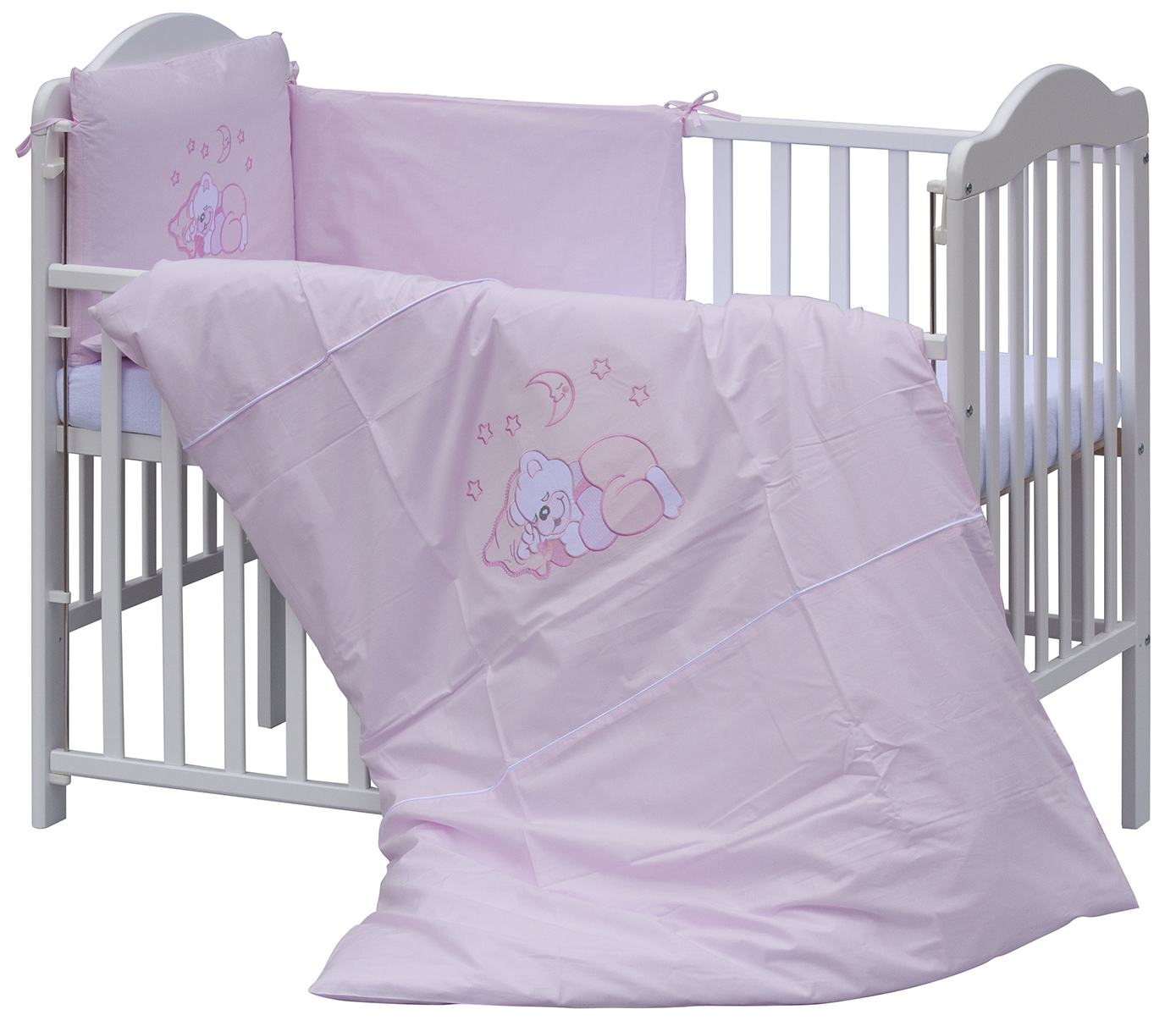 Scarlett Dětská postýlka s kompletní výbavou Scarlett 120 x 60 cm - Měsíček - růžová