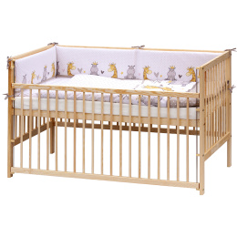 1 . Dětská dřevěná postýlka 140x70 cm - přírodní, masiv borovice, stahovací bok, 6 poloh roštu