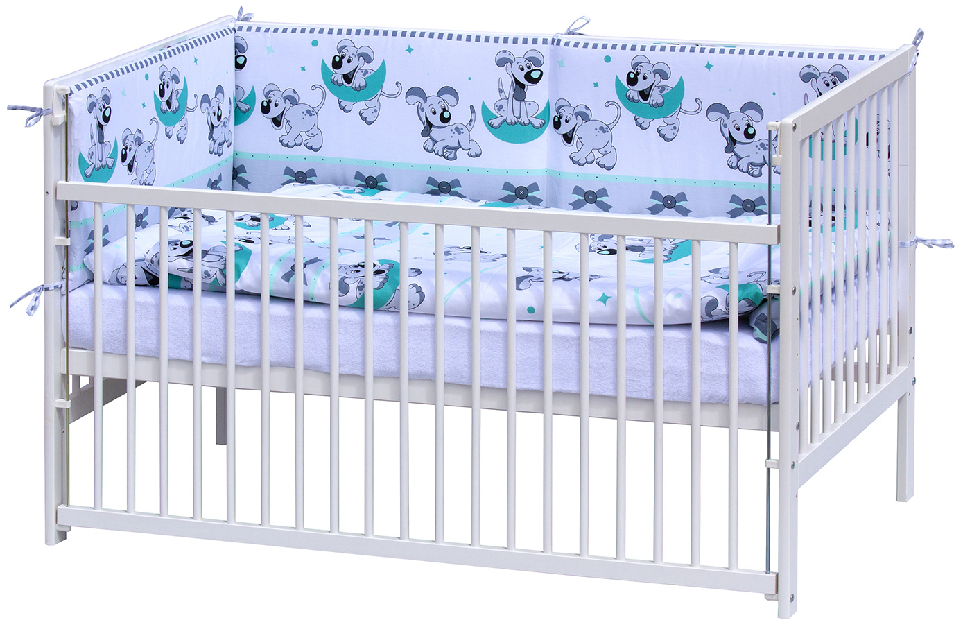 Dětská postýlka s kompletní soupravou povlečení a doplňků Tigi - tyrkysová