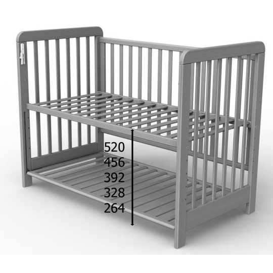 Postýlka Scarlett Vista obsahuje bočnici, která lze standardně stáhnout, nebo zasunout pod postýlku, a rošt nastavitelný do 5-ti poloh. Nohy postýlky jsou předvrtány pro kolečka.