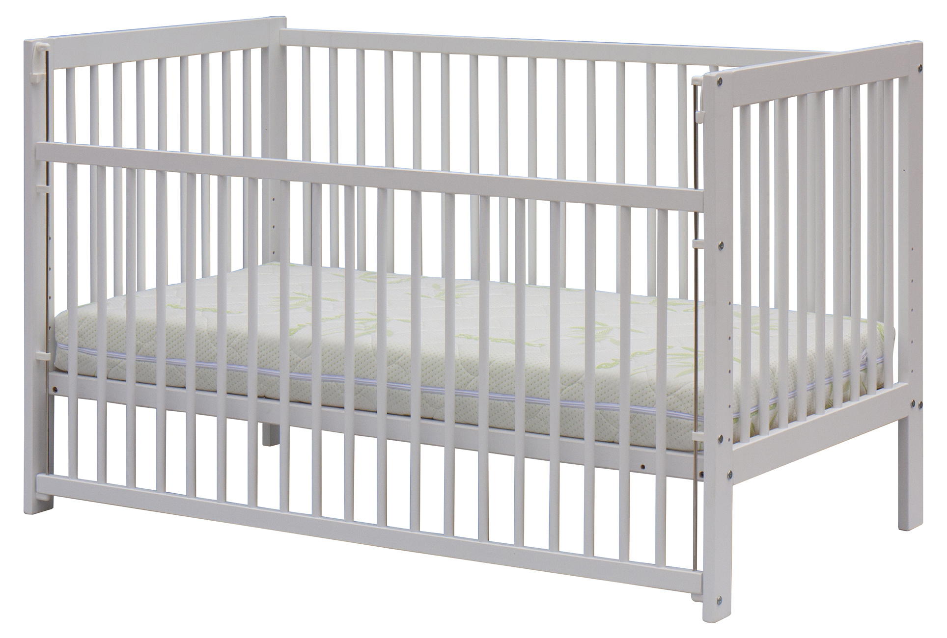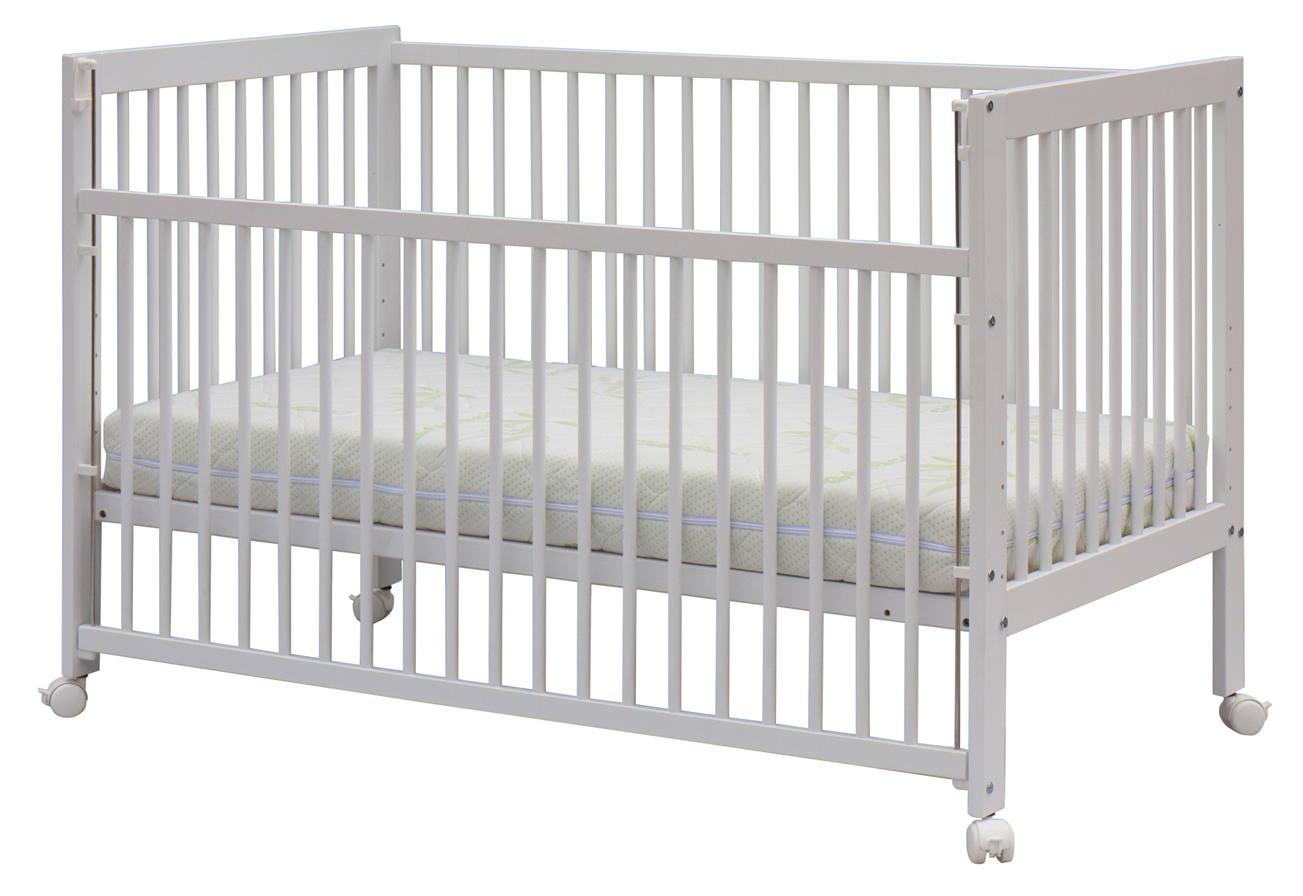 Matrace, válendová bočnice a kolečka nejsou standartní součástí postýlky, ale je možné je objednat z naší nabídky.