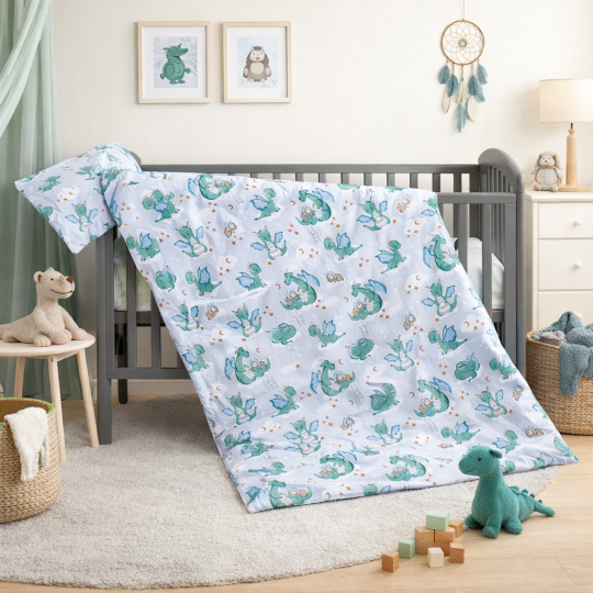 Scarlett Povlečení do postýlky 2dílné - Scarlett Dino - 135 x 100 cm - tyrkysové