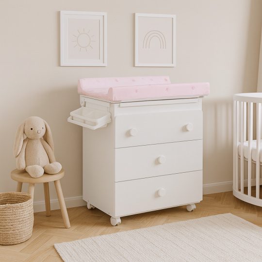 Scarlett Přebalovací komoda s vaničkou Scarlett Vista - bílá - s Přebalovací podložkou Slon - Růžová