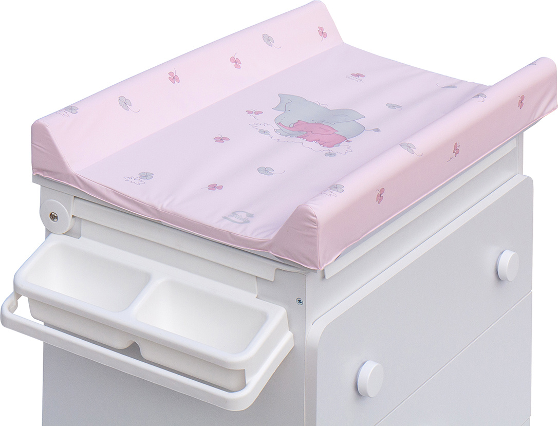 Scarlett Přebalovací komoda s vaničkou Scarlett Vista - bílá - s Přebalovací podložkou Slon - Růžová