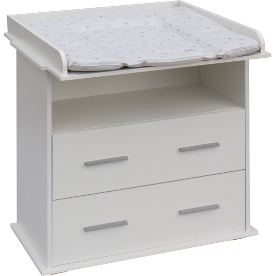 Přebalovací podložka z PVC není v ceně. Váha komody včetně nástavce je 36 kg.