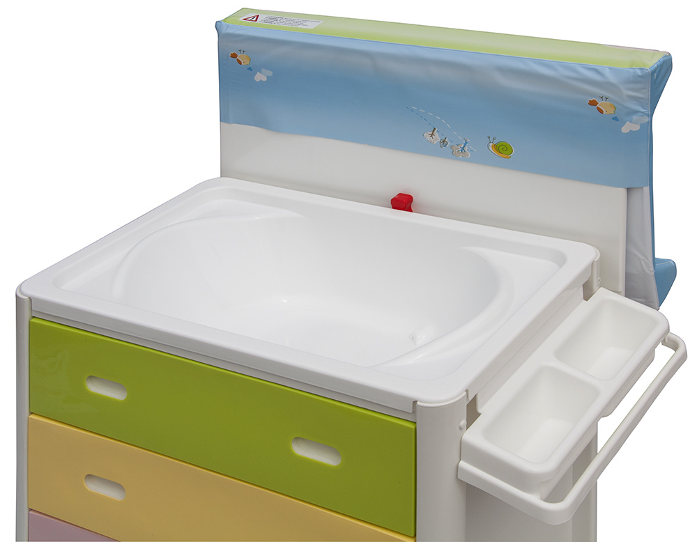 Koupání: pod přebalovací podložkou je umístěna velká vanička.