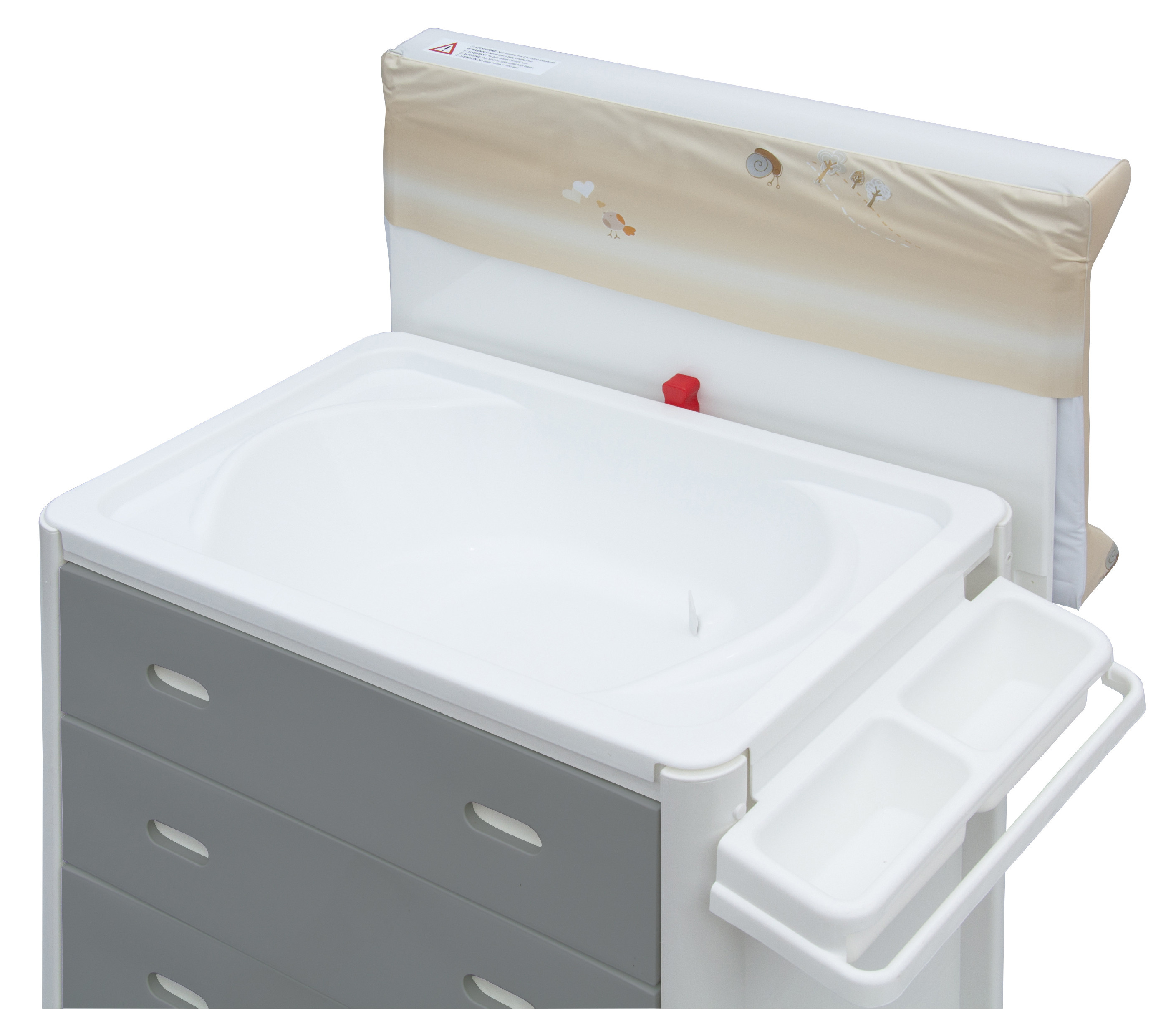 Koupání: pod přebalovací podložkou je umístěna velká vanička.