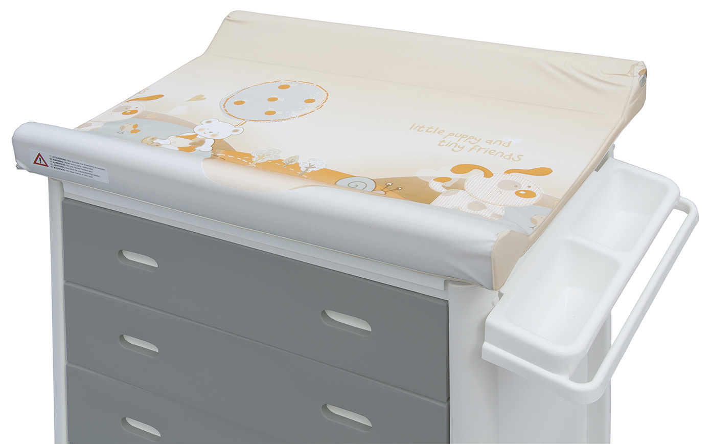 Přebalování: tvarovaná přebalovací podložka s pevnou deskou. Povrch podložky je vyroben z bezpečného PVC nejvyšší kvality, neobsahující ftaláty, je omyvatelná a lehce se udržuje v čistotě.