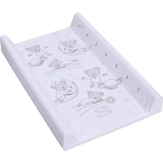 Přebalovací podložka s kapsou na spodní straně a profilovanými okraji z kvalitním PVC potahem bez ftalátů, vyplněná molitanem. Tato podložka je určena na komody s výklopnou deskou. Motivy přebalovacích podložek se často obměňují.