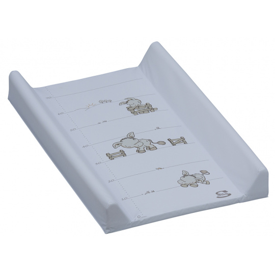 Přebalovací podložka s kapsou na spodní straně a profilovanými okraji z kvalitním PVC potahem bez ftalátů, vyplněná molitanem. Tato podložka je určena na komody s výklopnou deskou. Motivy přebalovacích podložek se často obměňují.