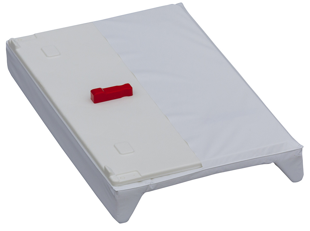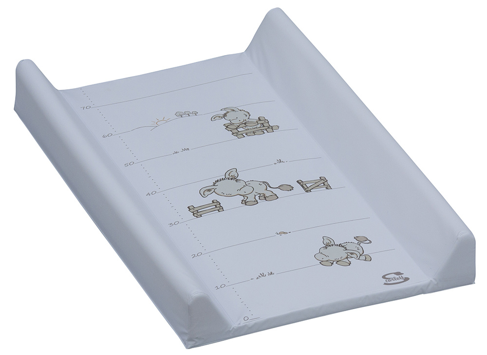 Přebalovací podložka s kapsou na spodní straně a profilovanými okraji z kvalitním PVC potahem bez ftalátů, vyplněná molitanem. Tato podložka je určena na komody s výklopnou deskou. Motivy přebalovacích podložek se často obměňují.